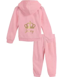 Juicy Couture Little Girls Gold-Tone Crown Signature Zip-Up Hoodie And Pants, 2 Piece Set