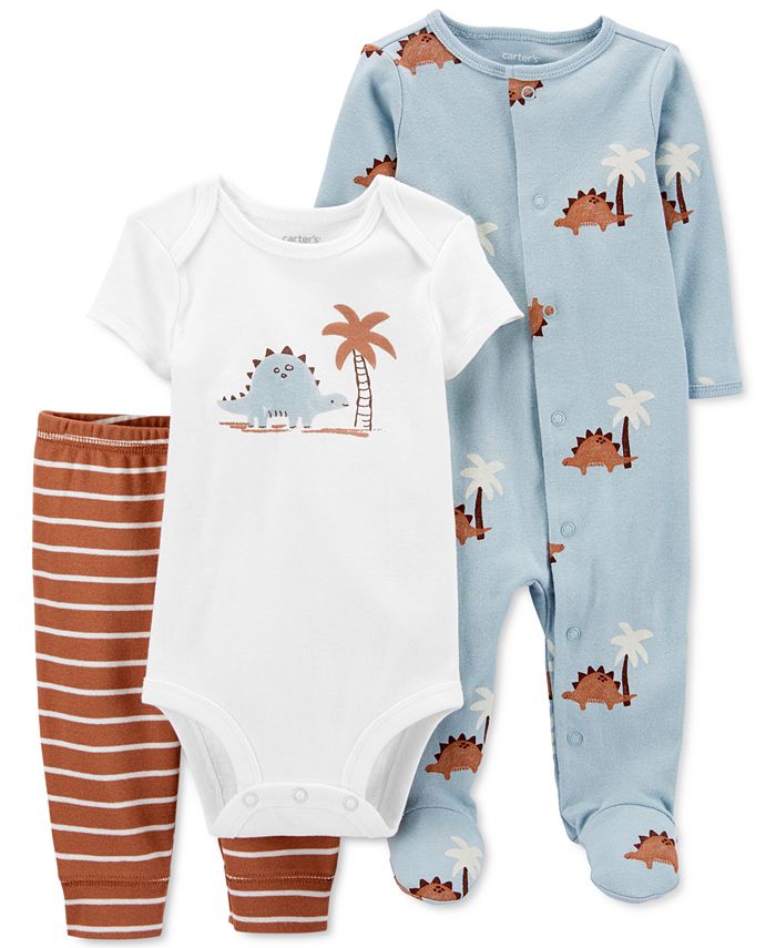 Stock up on three pieces for baby from Carter’s, including a bodysuit and matching pair of pants, and a snap-up sleep and play, too