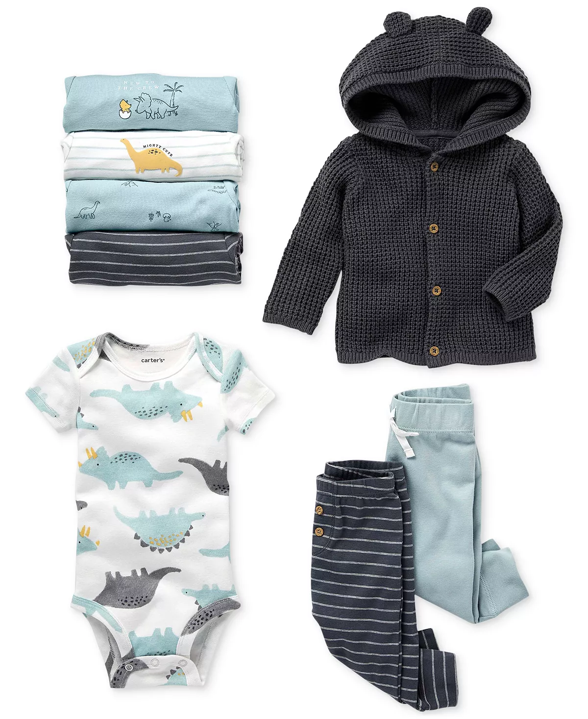 Styled in soft cotton, these mix-and-match separates from Carter’s make sure that baby stays comfy and warm wherever he goes.