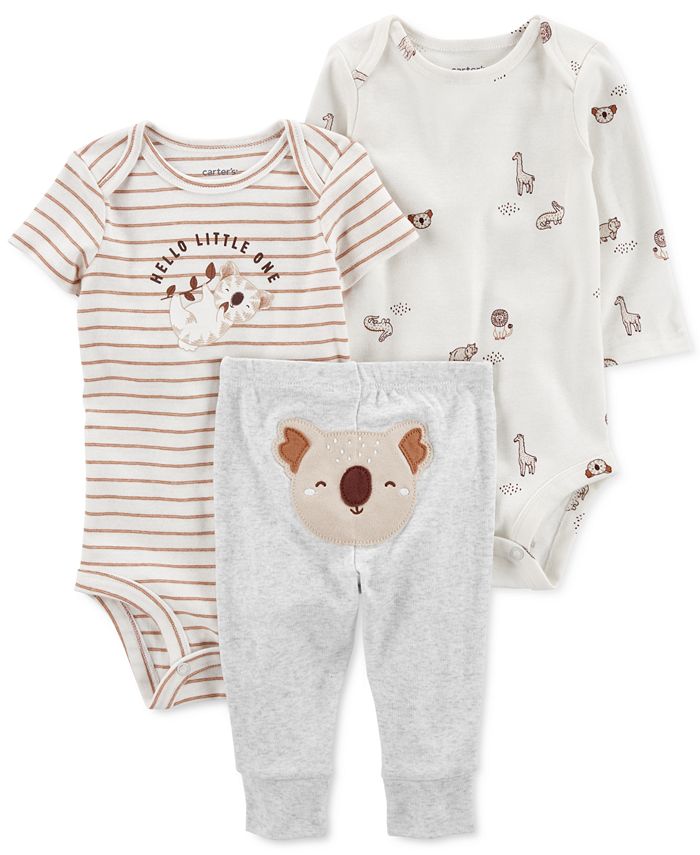 Crafted in soft cotton with three sweet pieces, this Carter’s set is complete with two bodysuits and a pair of easy-on pants, each with adorable koala graphics.