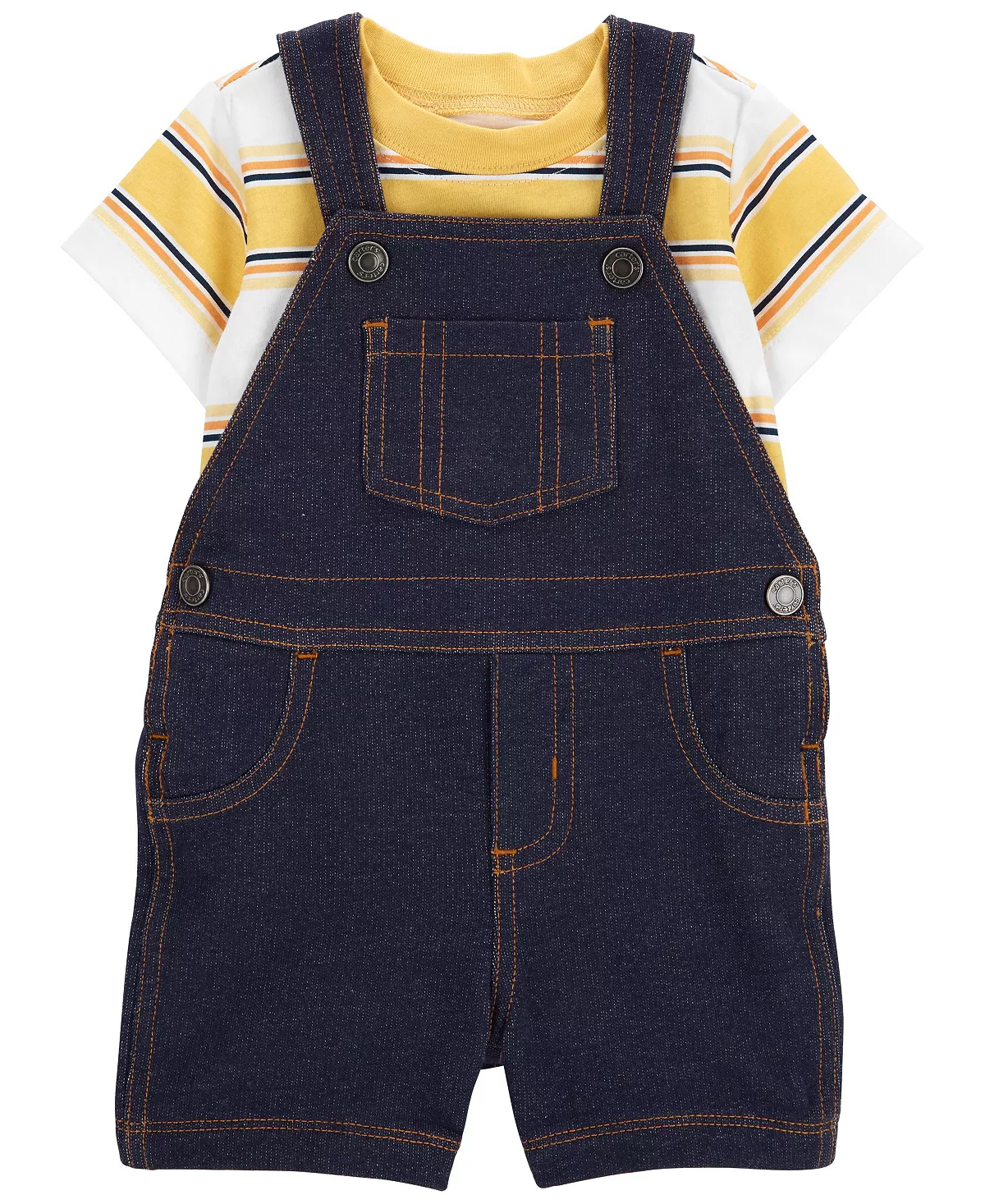 Crafted in soft cotton, this set is complete with a short-sleeve T-shirt to go under a cute pair of shortalls.