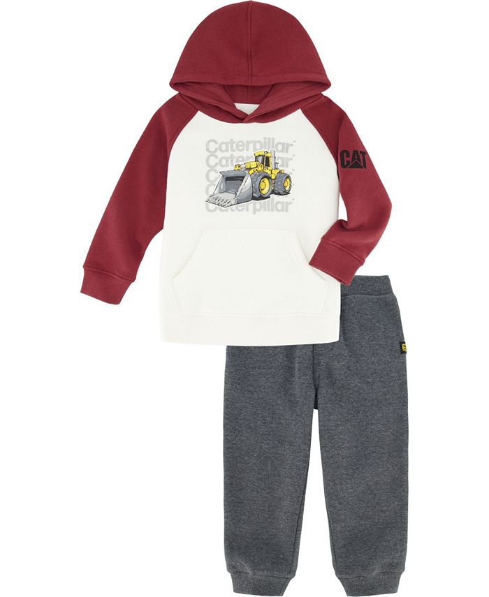 Designed for durability, this comfy outfit from Caterpillar includes a pullover hoodie with raglan styling for a roomier fit, and cozy fleece joggers for casual style.