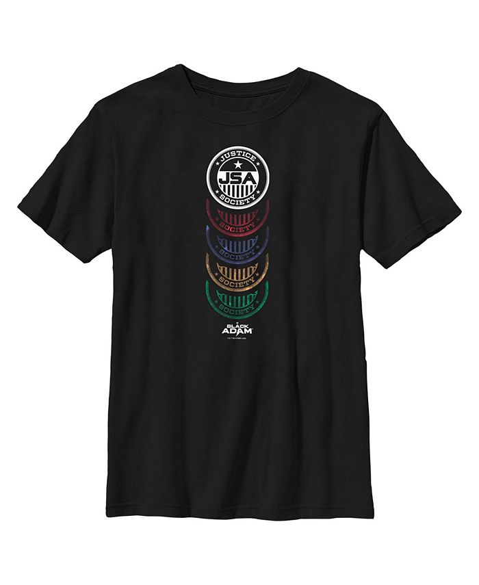 - Strut your stuff with this stylish new everyday Boys’ T-Shirt that is perfect for every occasion! Featuring the Justice Society of America badge stacked in different colors.