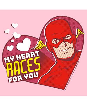 Get in the Valentine’s Day mood with this officially licensed Girls’ Pink Warner Brothers Justice League Valentine’s Day The Flash My Heart Races for You Tee! Featuring The Flash with the words “My Heart Races For You” inside of a big heart, you are sure to attract all the Justice League fans and ma