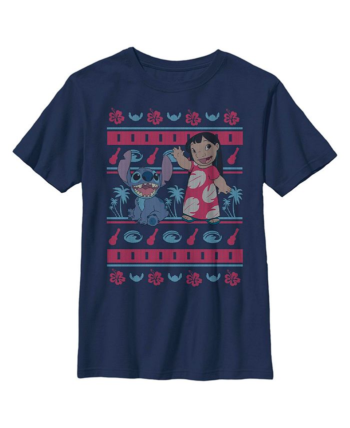 Ohana means family, and that means no tee gets left behind for Christmas with this officially licensed Disney Lilo & Stitch Tropical Ugly Sweater Tee! This festive Boys’ design features Lilo waving and Stitch smiling, printed in an ugly sweater fashion. Grab this new graphic tee for the holiday seas