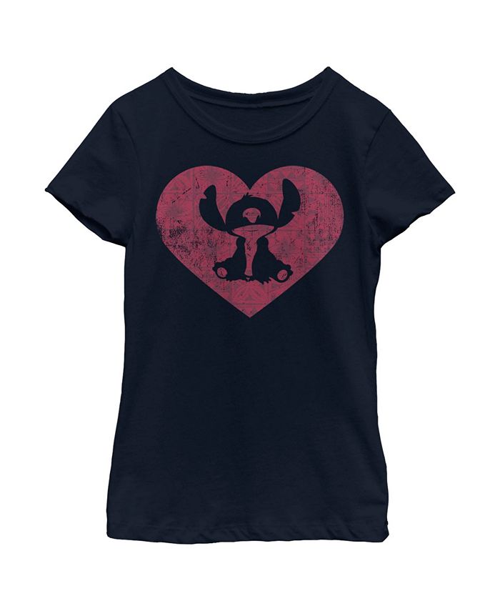 Get in the Valentine’s Day mood with this officially licensed Girls’ Navy Disney Lilo & Stitch Heart Silhouette Tee! Featuring Stitch’s silhouette inside a big heart, you are sure to attract many Lilo & Stitch fans and maybe even snag a cute Valentine! Dress in style this season with this new graphi