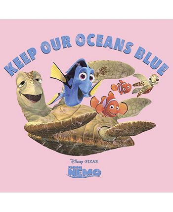 Nemo and his dad Marlin are proof that you don’t need to be big to be brave Set out on the open sea with this officially licensed Disney Pixar Finding Nemo Keep Our Oceans Blue Girls’ T-Shirt This tee features Nemo, Marlin, Dory, Crush, and Squirt with the text: “Keep Our Oceans Blue,” above them.