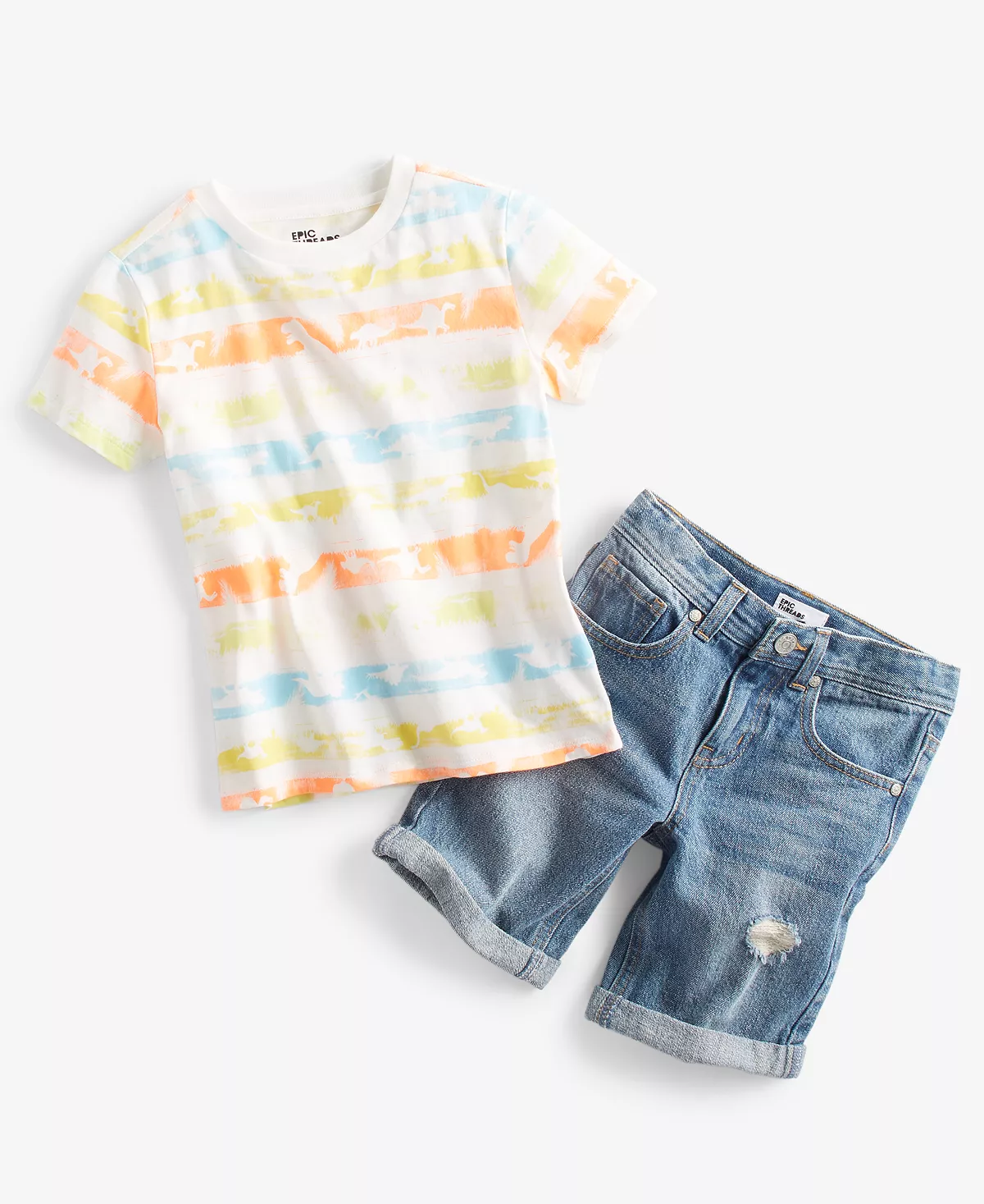 Epic Threads Dino Striped T-Shirt & Rolled Cuff Denim Shorts Separates, Created For Macy’s