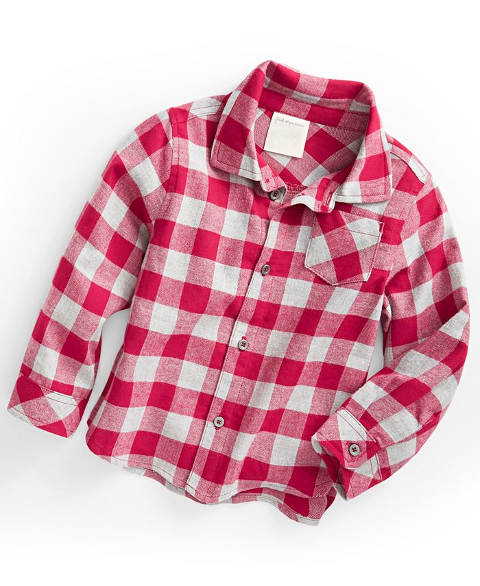 First Impressions adds button-up style to his wardrobe with this adorable long-sleeve shirt, showcasing a super-soft feel and buffalo check print.