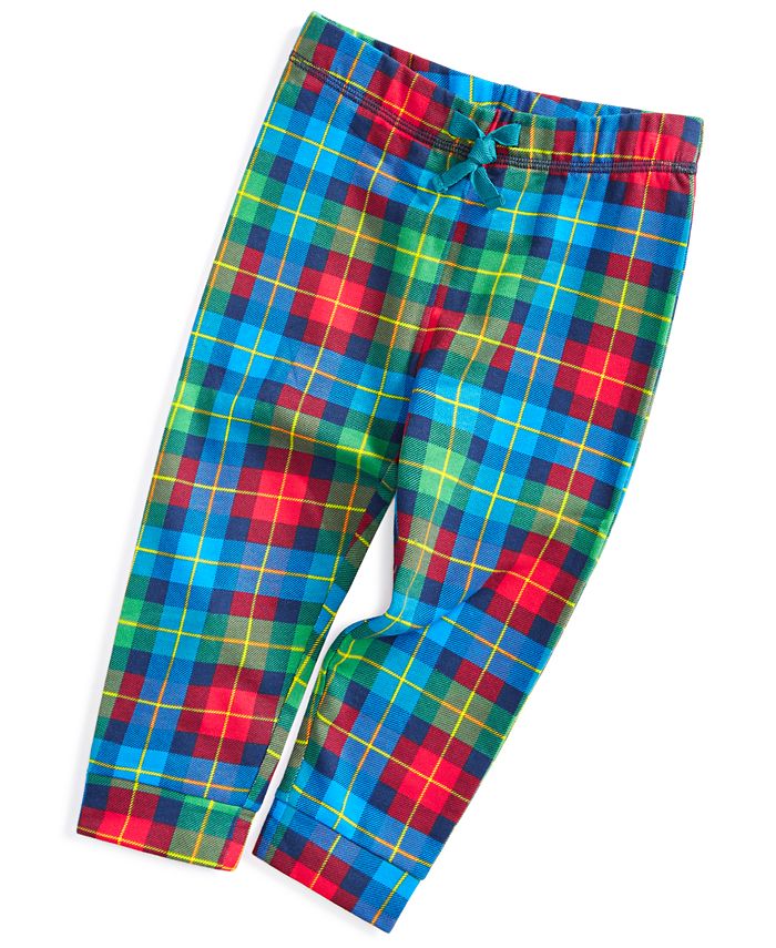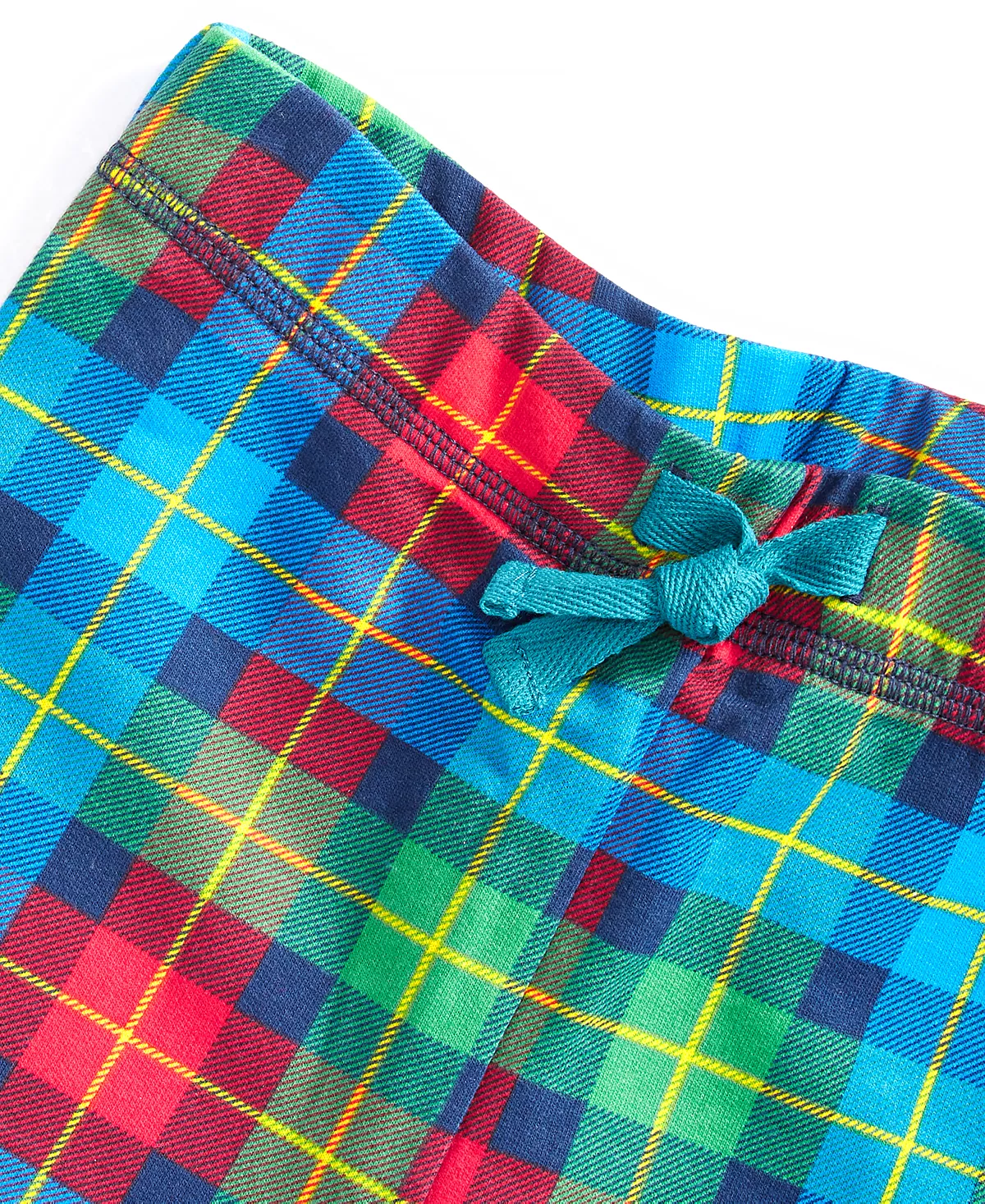 First Impressions uses a colorful plaid print to create the dynamic style of these comfortable jogger pants.