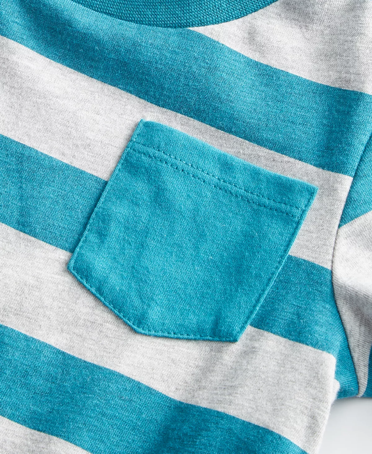 First Impressions helps him show off his sporty style with this comfortable crewneck with a classic stripes and a pocket at the chest.