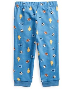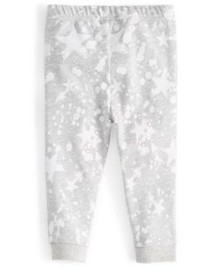 - Bottoms: elastic at waist; faux fly and button closure; belt loops