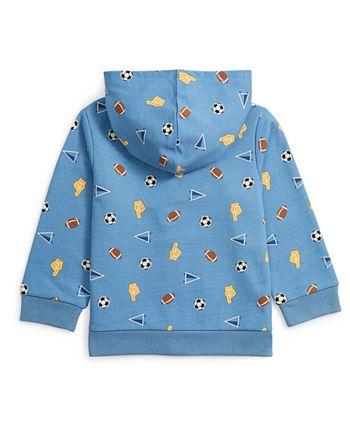 A fun sports print covers this long-sleeve hoodie from First Impressions, featuring a full-zip closure and kangaroo pockets at the front.