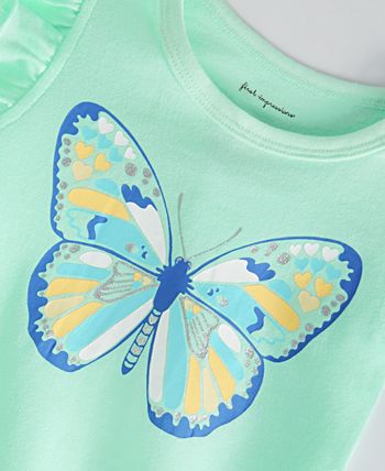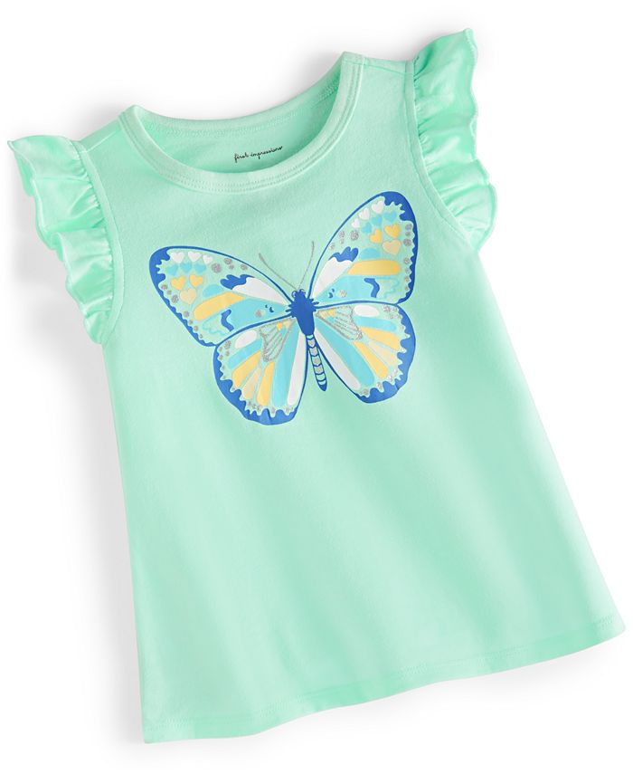 Ruffled sleeves and a charming butterfly print make for a gorgeous look on this t-shirt by First Impressions.