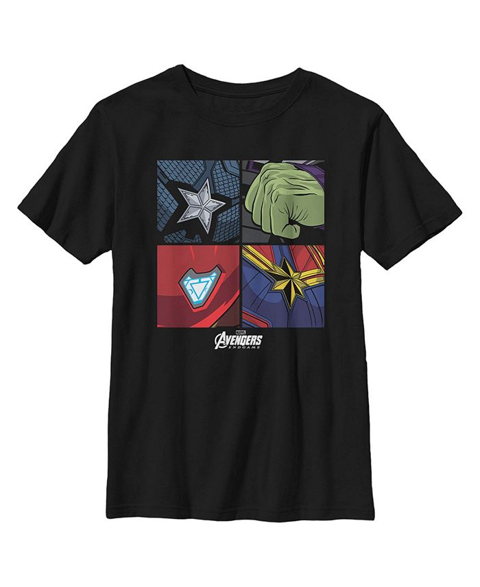 Lose yourself in the pages of a comic book or the movie adventure of a lifetime with your favorite Marvel superheroes and this officially licensed Avengers: Endgame Emblem 4 Panel Boys’ Graphic Husky T-Shirt All of your favorite superhero badges, including those belonging to Captain America, Hulk,