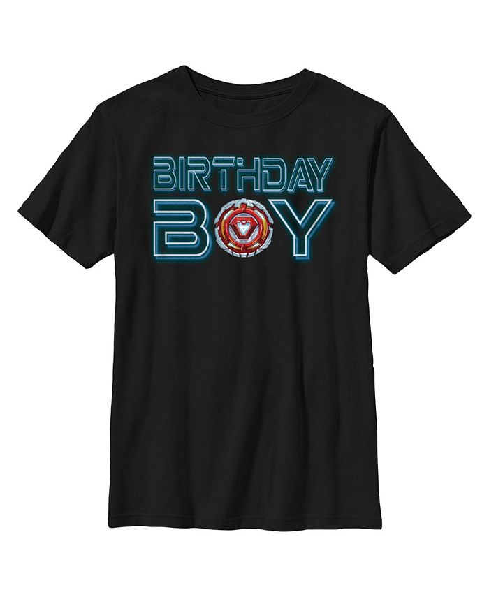 - Strut your stuff with this stylish new everyday Boys’ T-Shirt that is perfect for every occasion Featuring the phrase “Birthday Boy” printed across the front with an Iron Man icon from the spin-off comics Avengers Mech Strike.