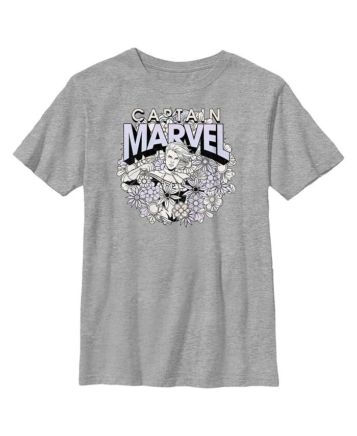 Lose yourself in the pages of a comic book or the movie adventure of a lifetime with your favorite Marvel superheroes! This festive officially licensed Marvel Floral Carol Danvers Boys’ Graphic T-Shirt features a black and white graphic of Captain Marvel printed across the front, with flower doodles