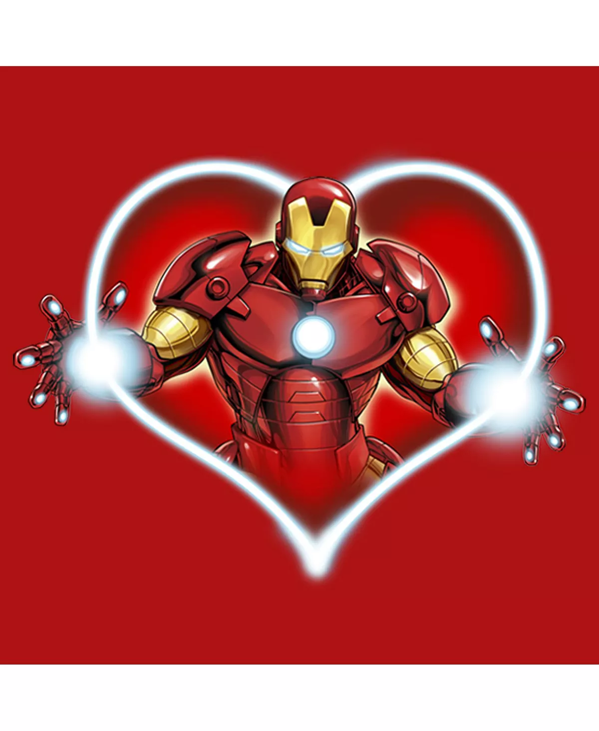Get in the Valentine’s Day mood with this officially licensed Boys’ Red Marvel Valentine’s Day Iron Man Heart Frame Tee! Featuring Iron Man powering up to blast you with a ray of love, you are sure to attract all the Marvel fans and maybe even snag a cute Valentine! Dress in style this season with t