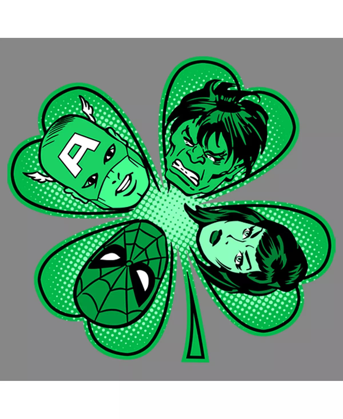 - Featuring a four-leaf clover with Captain America, Hulk, Spider-Man, and Black Widow!