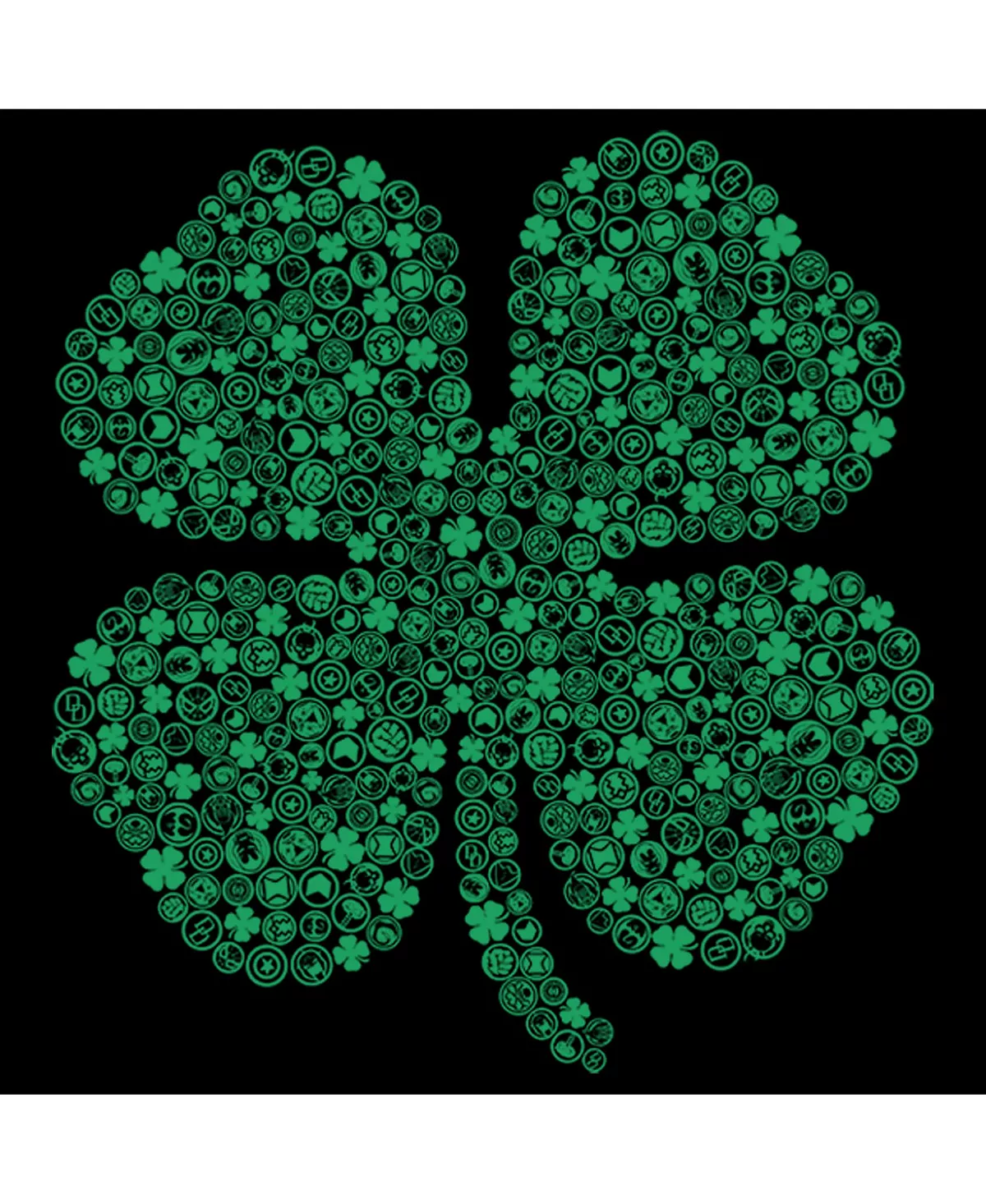 - Strut your stuff with this stylish new St. Patrick’s Day Boys’ T-Shirt that features a collage of your favorite superhero icons like Black Widow and Thor as a four-leaf clover.