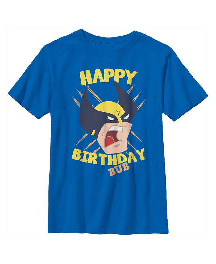 - Strut your stuff with this stylish new everyday Boys’ T-Shirt that is perfect for every occasion Featuring Wolverine all riled up for your special day screaming “Happy Birthday Bub”.