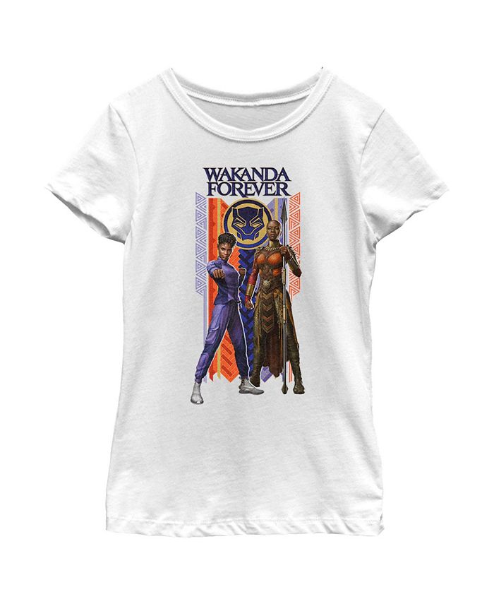 - Strut your stuff with this stylish new everyday Girls’ T-Shirt that is perfect for every occasion! Featuring Shuri and Okoye posing with an ornately decorated background.