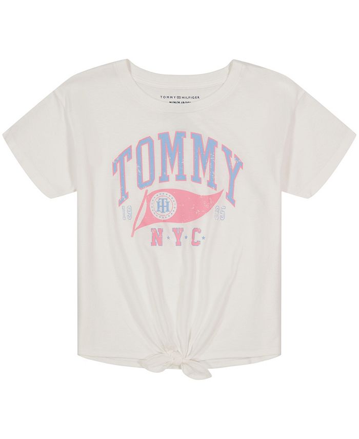 Keep her casual style cute in this signature T-shirt from Tommy Hilfiger, featuring a playful tie front.