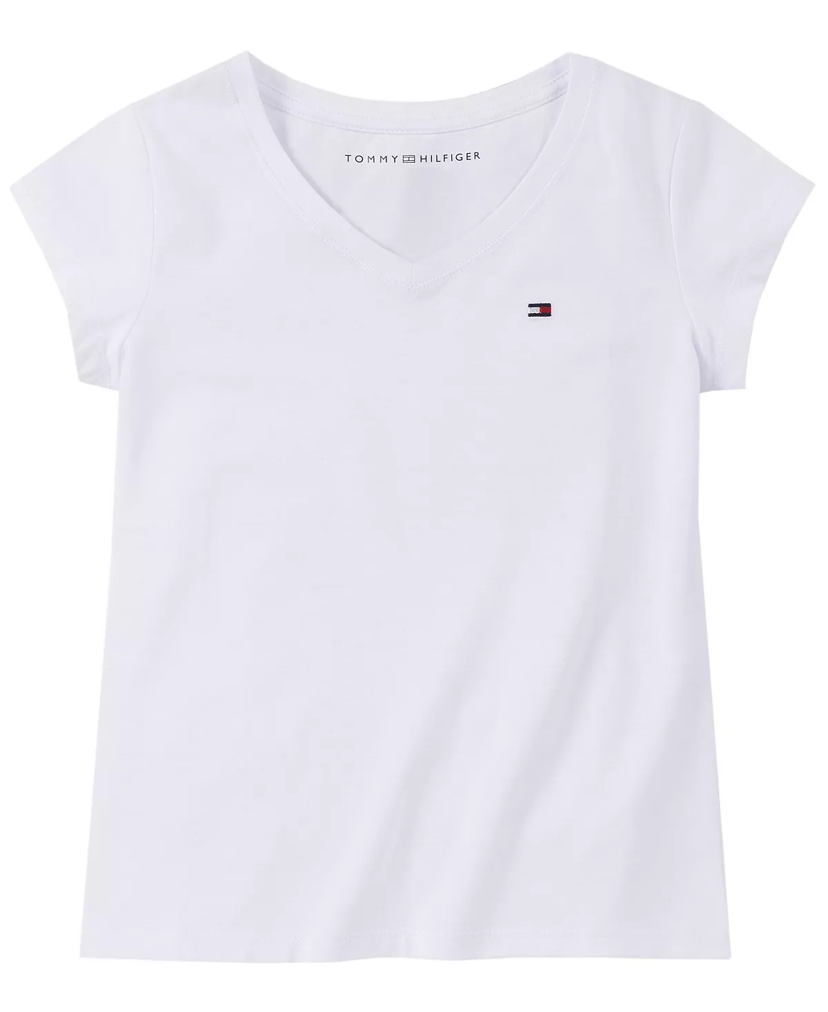 Tommy Hilfiger V-neck T-shirt is made from 100% cotton for breathable comfort and just right for her casual style.